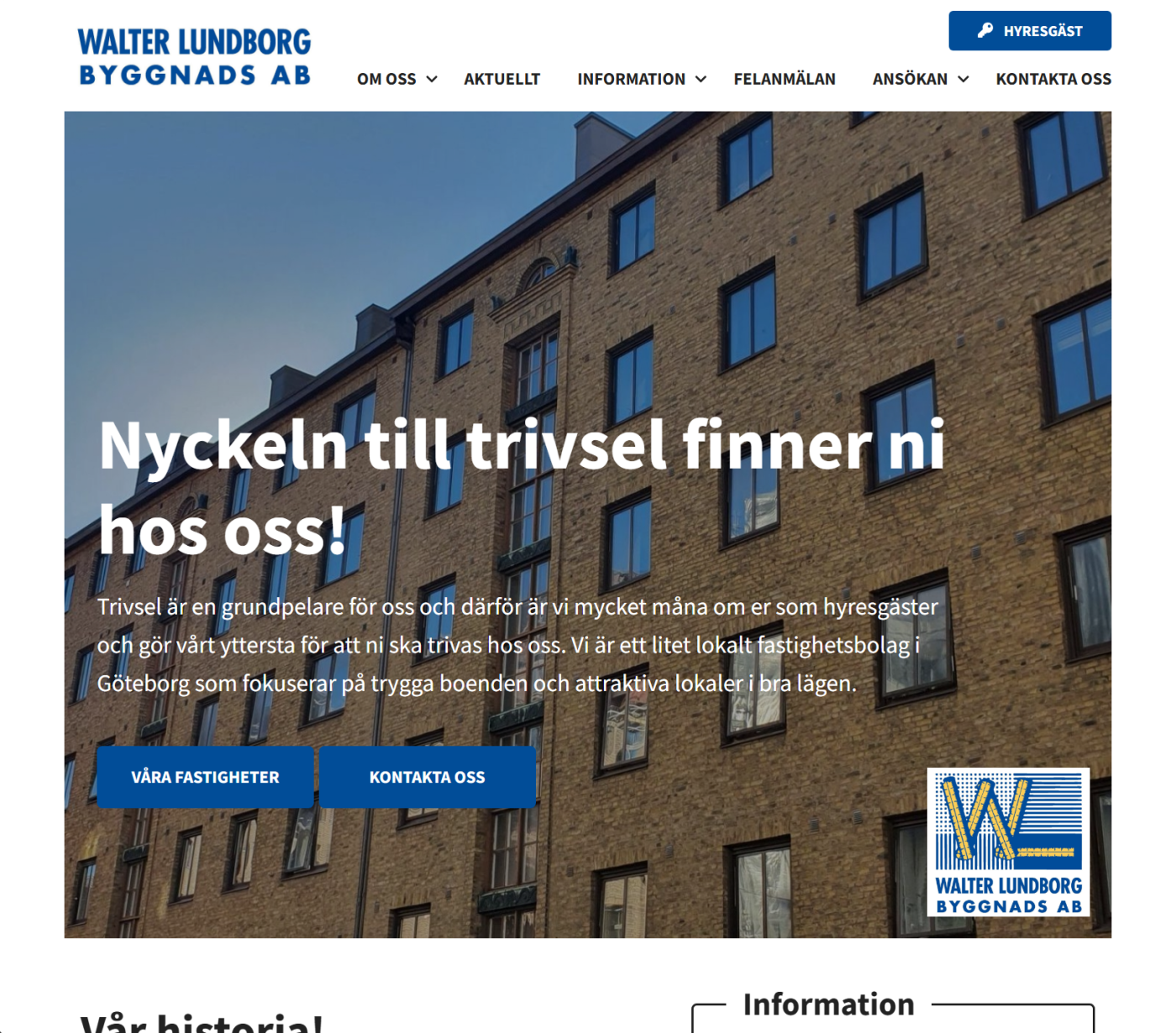 Vi kommer fortsätta att fylla på med mer information, bilder och histora över tid. Dessutom kommer det att komma nya funktioner, såsom inloggningsida för att komma åt dokument och senare även hyresavier och kontrakt mm. Lösenordsskyddade sidor kommer vi att informerar våra hyresgäster om hur ni kommer åt dessa.